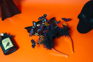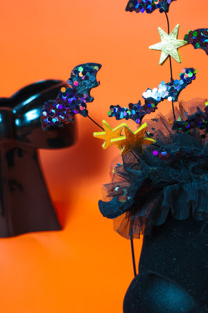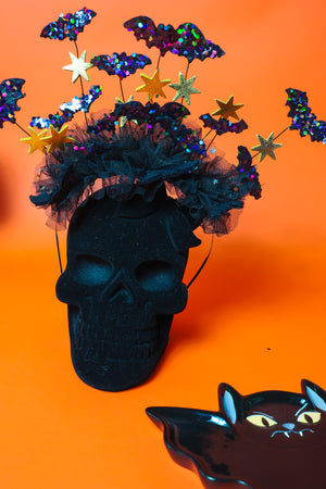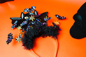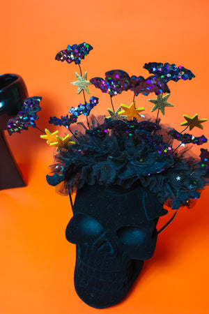Embrace spooky fun with the Batty For You headband! Crafted from soft wool blend felt, these playful bats add a whimsical touch to your Halloween costume. Lightweight yet eye-catching, this statement piece is perfect for adding character and charm to your festive look. Let your Halloween spirit take flight in style!