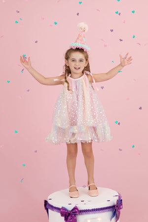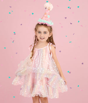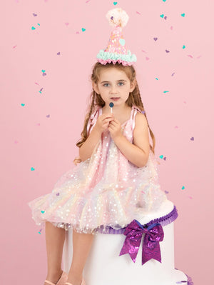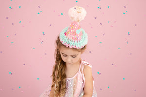 Add a spark of joy to any birthday with these playful Celebration Party Hats. Crafted from a cozy wool blend felt, each hat is topped with an eye catching glitter yarn pompon and accented with vibrant ribbons. Designed to fit comfortably, these fun headdresses bring festivity and flair to your celebration outfit, making every moment feel extra special. Perfect for party goers of all ages looking to shine and smile!