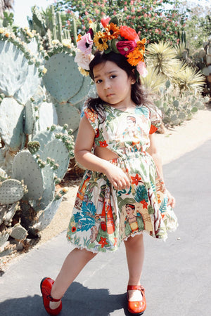 Introducing the Frida K Inspired Floating Halo, a luxurious fascinator crafted from wool felt and blended felt elements. This statement piece expertly captures Frida Kahlo's Mexican culture folklore with its delicate daisies and monarch butterflies. An accessory steeped in tradition, this fascinator will transport you to the days of classic fascinators, imbued with a modern and stylish charm.