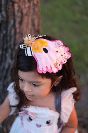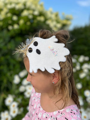 Be the life of the party with this Friendly Ghost Fascinator! This wool blended felt halloween headband is the perfect statement piece for any over-the-top costume or fantasy look. Get those ghoul-friends ghostly jealous when you show up in style!