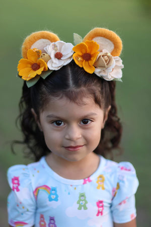 Add a bit of playful charm to your look with our Inspired Brave Heart Ear Clips. These care bears inspired hair accessories feature brave heart shaped ears and are crafted from wool felt, creating a unique and whimsical touch. Perfect for adding a fun touch to any hairstyle, these ear clips also double as adorable flower crowns with felt flowers.