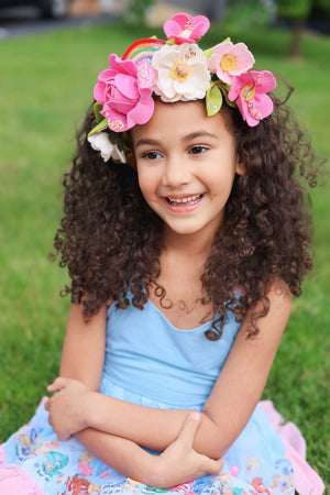 This lively floral crown is inspired by our favorite childhood cartoons - the Care Bears! Girly, colorful, and full of vibrant pink flowers, these felt wool flower hair clips are perfect for adding a touch of childhood nostalgia to any outfit. The perfect accessory for any cheerful and carefree day!
