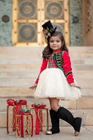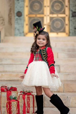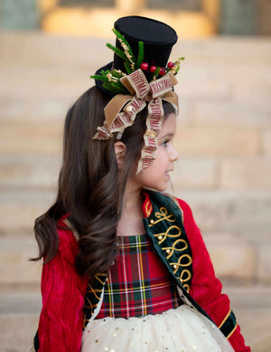 Add a festive twist to your holiday look with the M2M Nutcracker Topper. Crafted from soft wool felt, this whimsical fascinator captures the magic of the Nutcracker season. Perfect for spreading holiday cheer, its playful design elevates any outfit, making your celebration truly over the top.