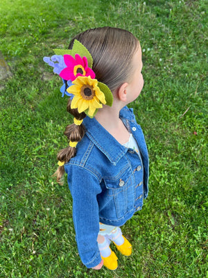 A statement piece of a lifetime! Forget the same-old boring hair clips - this Small Chianti Cluster will be the envy of everyone around! Hot pink wild flowers, classic sunflower and lavender, crafted with wool felt. What more do you need for a fashion-forward look? Be ready for compliments!