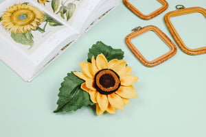 Elevate your style with our Sunflower Fascinator. Handcrafted from blended wool felt and adorned with delicate felt flowers, this floral fascinator is the perfect statement piece for any outfit. Stand out from the crowd with this over the top, yet elegant flower headpiece.